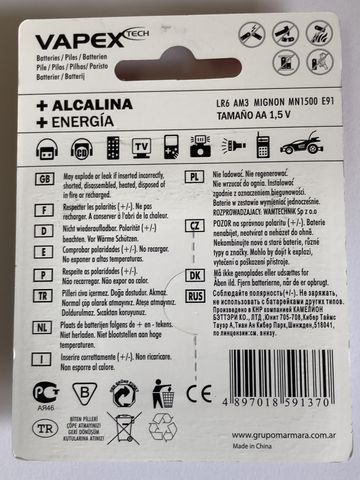 Alkali Batterien Typ AA 1.5V VAPEX TECH (4)
