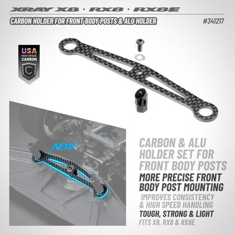 CARBON Halterung für vordere Karosseriestützen mit Alu Halterung – SET XRAY 341217