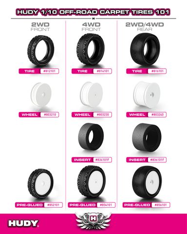 – 852101 HUDY 1/10 Off-Road Pre-Glued Tire 2WD Front Carpet – 101 (2)